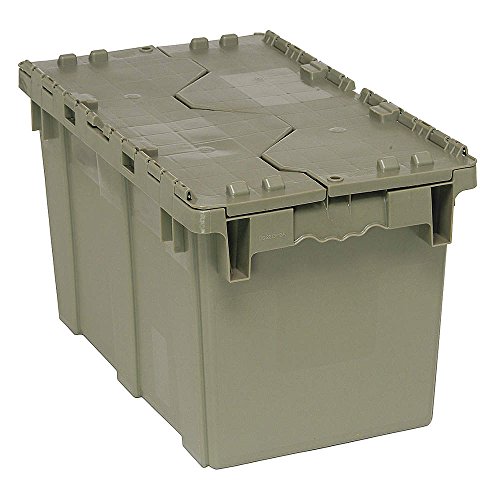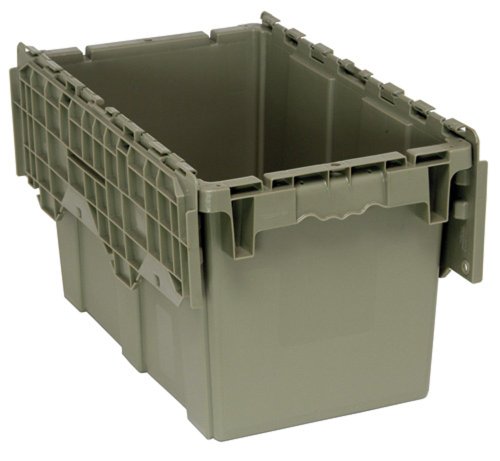 Studio : Quantum Storage Publisher : Quantum Storage Binding : Kitchen Product Description Strong, reliable and reusable totes are ideal for storage, distribution and order picking. Attached tops are permanently attached with steel hinges that interlock for stacking strength and security. Stack for maximized storage and nest when empty. Textured, non-slip bottom ensures smooth conveying. Ergonomically designed handles allow for easy lifting. Recessed lids ensure maximum load stability. Padlock eye provides security option allowing lids to be fastened and/or locked. Molded from high density, FDA approved polyethylene. Lids close securely to protect parts from dust or damage. Gray. 0