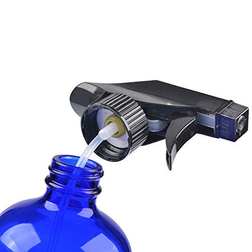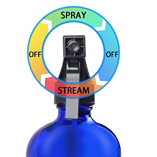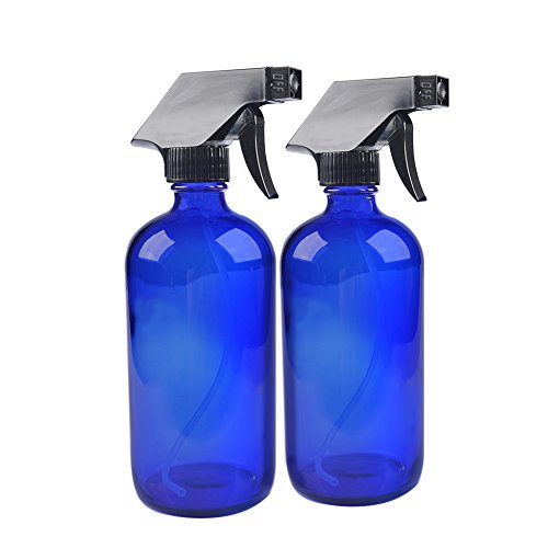 Two Blue Glass Spray Bottles with Black Trigger Sprayer.16 oz Refillable Bottle for Essential Oils,Cleaning Products,Aromatherapy,Organic Beauty Products.Stream and Spray Settings Available