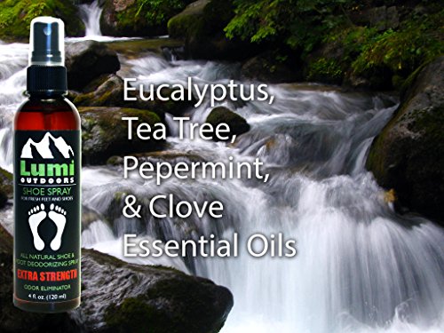 -. Binding : Kitchen -. Brand : Lumi Outdoors -. EAN : 0744633745005 -. Feature : 100% MONEY BACK GUARANTEE - We are completely confident that you will love our product. / NATURAL AND SAFE - We use essential oils with antibacterial and anti-fungal properties to safely remove shoe odor. / ELIMINATES ODOR - The essential oils we use kill odor causing bacteria and fungi to help prevent athlete's feet. / MAXIMUM STRENGTH - Our product is maximum strength, eliminating the toughest odors. / MADE IN THE USA - Proudly Manufactured in the United States -. IsAutographed : 0 -. Label : Lumi Outdoors -. Manufacturer : Lumi Outdoors -. MPN : LYSB013TSRYUS-SPRTSEQIP -. PackageQuantity : 1 -. PartNumber : LYSB013TSRYUS-SPRTSEQIP -. ProductGroup : Sports -. ProductTypeName : HOME -. Publisher : Lumi Outdoors -. Size : 4 oz -. Studio : Lumi Outdoors -. Title : Natural Shoe Spray and Foot Odor Deodorizer - Extra Strength - Uses Essential Oils As Organic Deodorant - Highest Concentration - Great for Athletes -. UPC : 744633745005