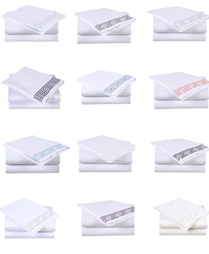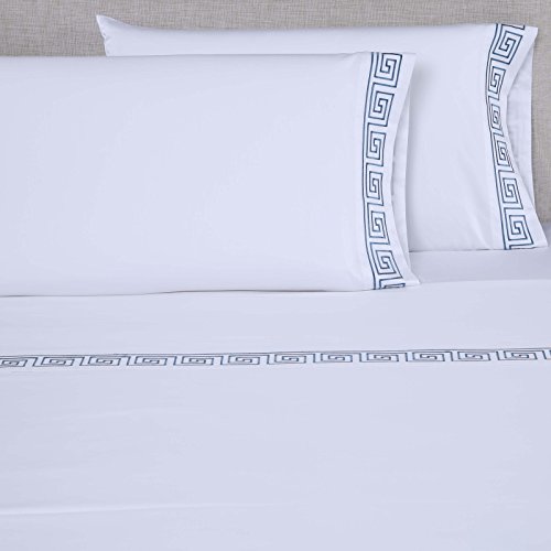 Affluence 600 Thread Count 100% Cotton Embroidered Sheet Sets - Greek Key Pattern (King Sheet Set, White/Blue)