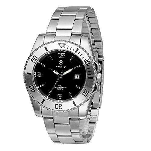 -. Feature : 40mm Round Stainless Steel watch case with Quartz movement and luminous hands/markers,Calendar Date Window / Two time tone and Three-link stainless steel band with safety foldover clasp .BTW We will enclosed a tool in the package to help you adjust the wrist size. / Super-smooth Surface Polishing Stainless Steel Case,High hardness / Good Abrasion-resistance/ Scratch-Resistant Watch Mirror that's why COMIO Watches can be durable / Waterproof 30M For Daily Use, Hand wash, shower, swimming ;Perfect for all kind of business, casual,Dress, indoor activities but not scuba diving. Classic Dress Watch Design,Combines quality, leading edge fashion and value. / Any question about the product, please contact COMIO Watches, we will try our best to help you solve your problem.