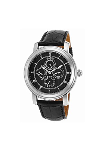 A highly regarded profile in time from the new Lucien Piccard Valarta collection. Classically elegant multi-function men's watch recalls the debonair spirit of the brand's early designs with a vintage inspired dial featuring shaped sword hands and Roman numeral hour markers along with day, date, 60-second and 24-hour subdials. The impressive 45mm diameter case in your choice of highly polished stainless steel, rose or yellow gold-tone stainless steel is presented on an attractive alligator-textured leather strap.Feature
