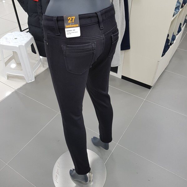 잠뱅이 여성 블랙 스웨이드 배색 노말워싱 겨울 밍크 슬림핏 청바지 입니다.
