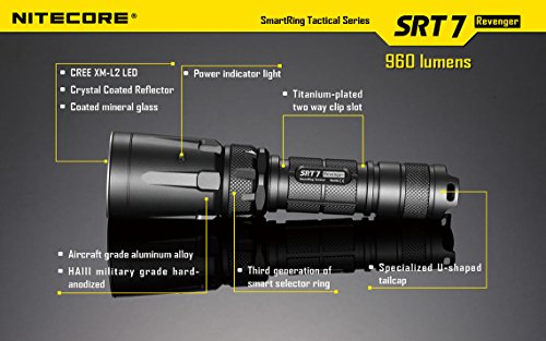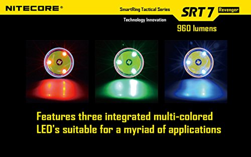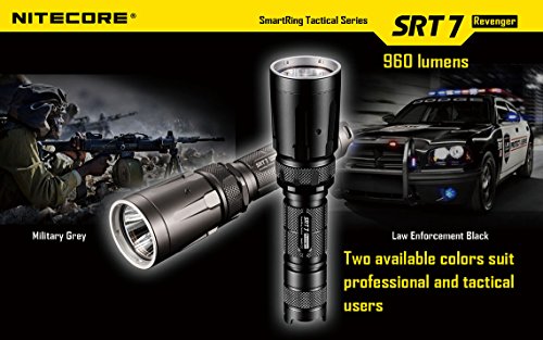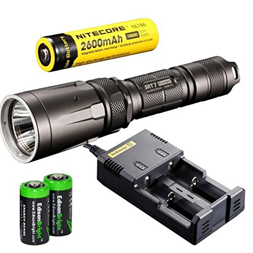 NITECORE SRT7 REVENGER (GRAY) 960 LUMENS XM-L2 LED BUILT IN RED, GREEN, BLUE LIGHTS, RED-BLUE STROBE, VARIABLE BRIGHTNESS FLASHLIGHT/SEARCHLIGHT WITH GENUINE NITECORE NL186 18650 2600MAH LI-ION RECHARGEABLE BATTERY, NITECORE I2 INTELLIGENT CHARGER, IN-CAR 12V CHARGING CABLE AND 2 X EDISONBRIGHT CR123A BATTERIES