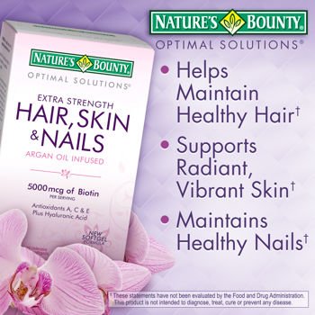 Nature's Bounty Hair Skin and Nails coated tablets provide a combination of nutrients consistently found in healthy hair, skin and nails. This supplement is guaranteed free of: wheat, gluten, milk, lactose, sugar, preservatives. Other vitamins, A,C,D, E, B-1,B-2,B-6, Niacin more. Also Calcium, Iron, zinc, magnesium are included.Feature