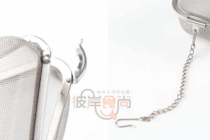 规 格:最大规格7.5×7.5×5.5cm 链长13cm 网格0.7mm 总 重:30g 包 装:opp简包装 用 途: 禁锢茶叶花茶,用于泡茶。