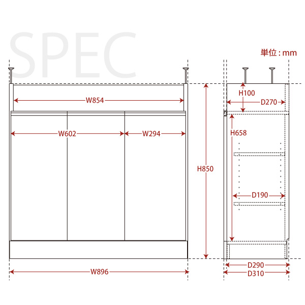 ●外寸サイズ:(約)幅89.6×奥行き29×高さ85cm