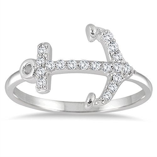 -. Title : 1/5 Carat Diamond Anchor Ring in 14K White Gold