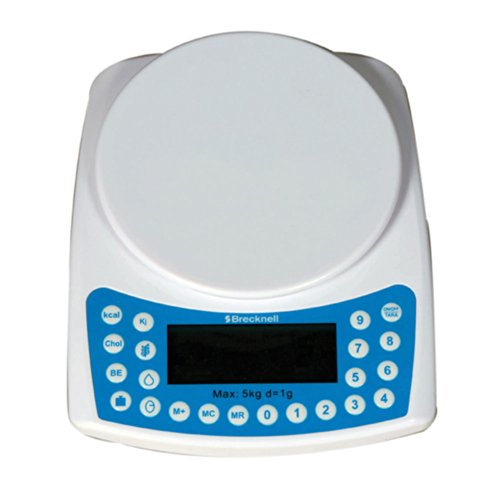 Brecknell DS-1 Dietary & Kitchen Scale 5.875" Round Platform Gray, 5000g. Capacity, Portion Sizing, Provides Nutrition Value for up to 400 Food 99 Item Memory Mode
