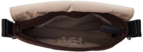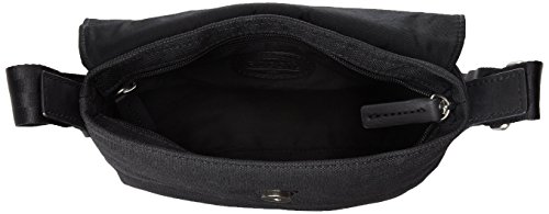 -. Feature : Small cross-body bag featuring front flap with leather tab and printed logo at corner / Adjustable cross-body strap / Pockets: 1 interior zip, 1 interior slip, 1 exterior slip