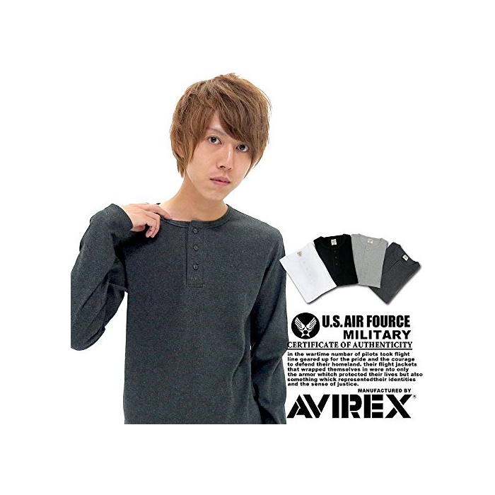 원본상품명: (アヴィレックス) AVIREX Tシャツ メンズ 長袖 ヘンリネック 無地 リブ 秋 4color