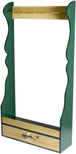 -. Feature : Holds 5 rods 'n' reels uP.R.Ight / You can stand it on the floor or hang it on the wall / Measures 19" wide x 36" high x 6" deep
