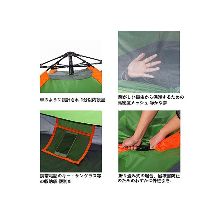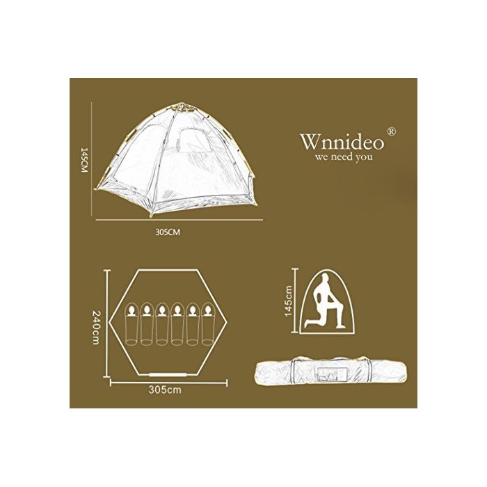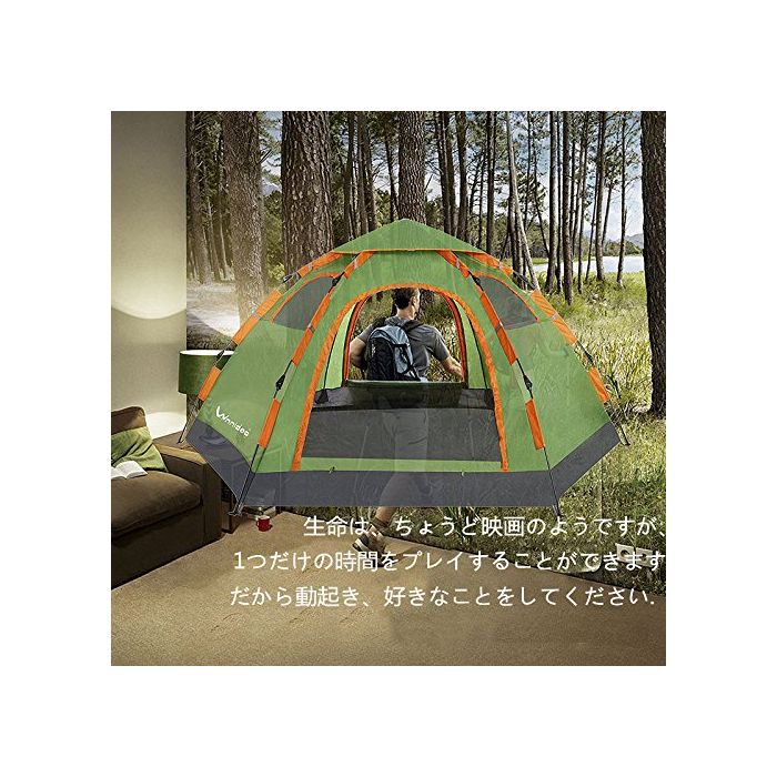 원본상품명: Wnnideo 4-5人 アウトドア キャンプ テントインスタント ワンタッチ テント 防撥水 日け止め 組み立て 1分 ドム 型 テント ワンタッチ式 (幅305cm×行240cm×高さ145