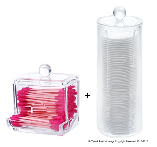 PuTwo Cotton Pads Holder Q-Tips Cotton Swab Q-Tips Holder Cotton Balls Dispenser - 2 Pack