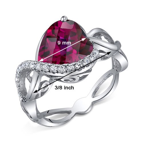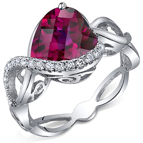 -. Title : 4.00 Carats Created Ruby Ring Sterling Silver Heart Shape Swirl Design Sizes 5 to 9
