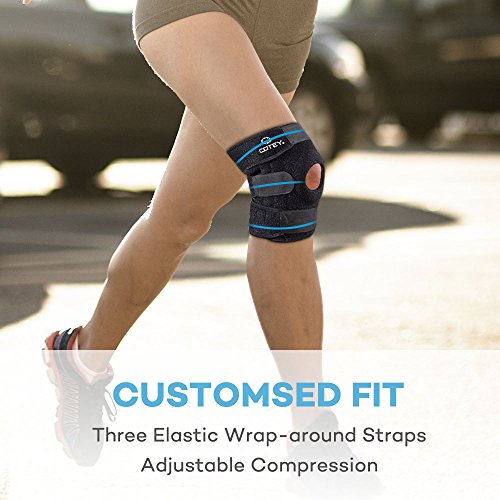 - Stay Away from Knee Injuries: The COTEY features four lateral and medial flexible springs which hold the knee in a stable position, helping to prevent flexion and extension, thus protecting the joint from damage. The open and extra-soft patella pad gives ventilation and relieves pressure on the knee cap, offering dual protections to your knee.