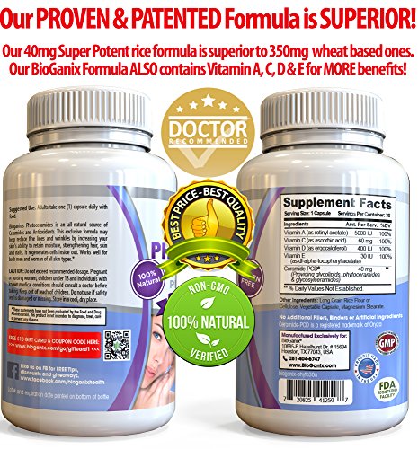 -. Feature : ★BEWARE!! OUR CERAMIDE-PCD ® PHYTOCERAMIDES ARE CLINICALLY PROVEN TO BE SUPERIOR - And More effective than 350mg wheat based & sweet potato based ceramides. Don't get fooled by lesser, cheaper formulations, boasting bigger 350mg quantity. These are proven to be inferior and not as effective for skin renewal. [See Images for Studies and Read our real Reviews.] / ★ PUREST MOST NATURAL GLUTEN FREE PHYTOCERAMIDES CAPSULES ON AMAZON! - Our Vegetarian Ceramide Capsules contains NO WHEAT and NO FILLERS, is 100% NATURAL & Organic and is made in the USA in GMP and FDA APPROVED facilities. [All natural = No negative side effects.] Many of our competitors can't claim this! / ★ TV Dr CALLED THIS A "FACELIFT IN A BOTTLE" BECAUSE IT WORKS! - Plant Derived Phytoceramides Supplement Pills are proven to work and has many benefits for your skin! Its an all natural anti aging supplement for healthy skin hydration, reducing of fine lines and wrinkles, "crow's feet" and strengthens collagen for firmer skin. It rejuvenates skin, hair and nails inside out. / ★ **MOST POTENT FORMULA ON AMAZON** This Miracle Phytoceramides for skin supplement with vitamins, from rice contains the Patented Oryza Formula and NOT a generic variant, like our competitors. [See Phytoceramides Ingredients and read the reviews] / ★ TODAY!!! BONUS "Practical Guide To Anti Aging Skin Care" GUIDE with a P.R.IVATE DISCOUNT COUPON ) Take with 8 Oz glass of water, once per day and See results or get your money back. [Read the reviews, and order today - ***BIG SALE going on TODAY!***]