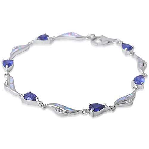 -. Title : Simulated Tanzanite & Lab Created White Opal .925 Sterling Silver Bracelet