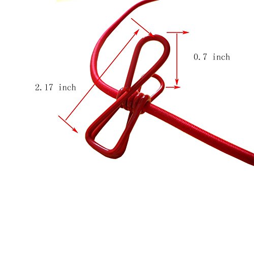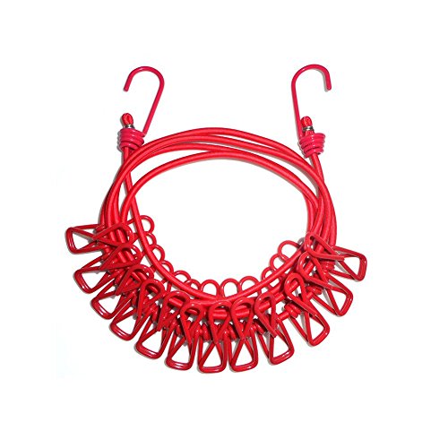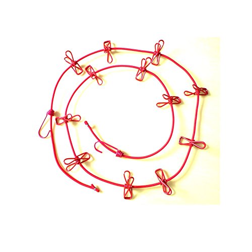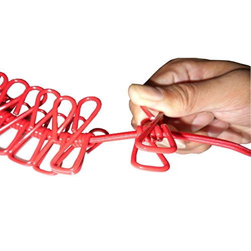 Eightnoo Portable Travel Home Outdoor Windproof Clothesline with 12 Pcs Stainless Steel Clips for hanging light clothes and photo displaying (Red)