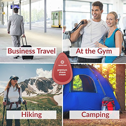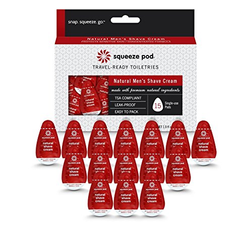 Squeeze Pod is a travel ready line of travel size personal care products conveniently packaged in patented, single-use "pods" for pampering and problem-solving on the go. All Squeeze Pod products are made in the USA using premium natural ingredients. Perfect for travelers and active people who squeeze the most out of life, Squeeze Pods are TSA-compliant and easy to pack or tuck in a pocket, backpack, carry-on or gym bag. We're proud our products are vegan and certified cruelty-free by PETA.Formulated for sensitive skin with no harmful preservatives or allergens, Squeeze Pod Travel Size Natural Shave Cream offers two-in-one convenience: It softens stubble for a close shave while moisturizing skin with natural sunflower seed, coconut, spruce and lemon verbena leaf oils. Our non-comedogenic shaving cream won't clog your pores.