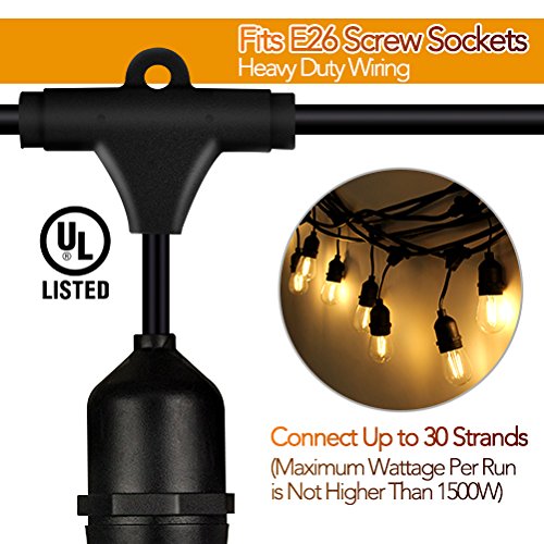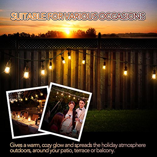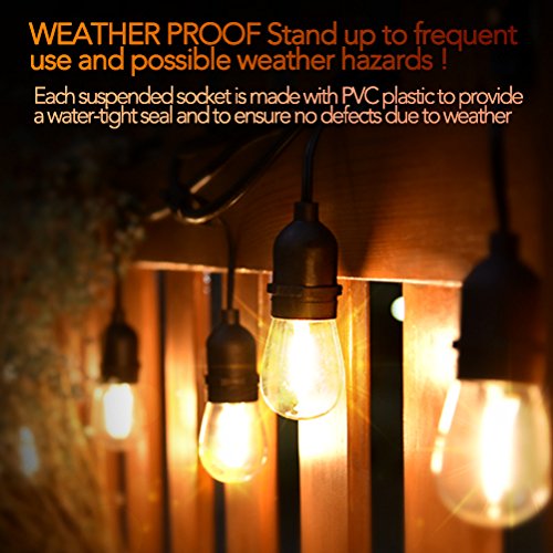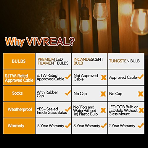 WEATHERTIT TECHNOLOGY & EXTREMELY DURABLE QUALITY VIVREAL String lights with WEATHERPROOF light sockets, Commercial grade string and heavy duty rubber construction, is approved for outdoor use without any worries of being damaged by fierce wind, heavy rain and even storm! Its top commercial quality make them perfect for patio lighting , gazebos, porches, outdoor events, parties, and restaurants/bars!It also comes with a fused plug for added safety.