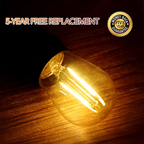 ADDING A TIMELESS CHARM TO YOUR HOUSE AND GARDEN! Features 15 clear 2W S14 FILAMENT light bulbs on a 48FT long industrial strength strand. Giving off a warm glow with amber glass, creating you a cozy, homey ambiance every place you lit them, VIVREAL String Lights allow you to perfectly light any space which will be the perfect piece for adding a timeless charm to your house! ! With its teardrop filament bulbs, this string light will add character to any room! These produce a warm amber glow !