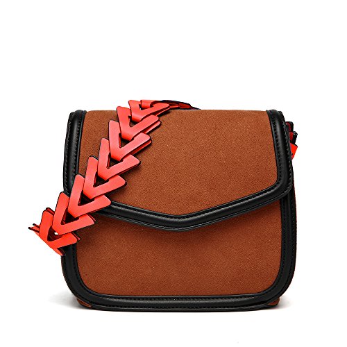 PeMe Crossbody Bag, Suede Genuine Leather Handbag, Ladies' Shoulder Bag, Women's Flap Bag, Brown