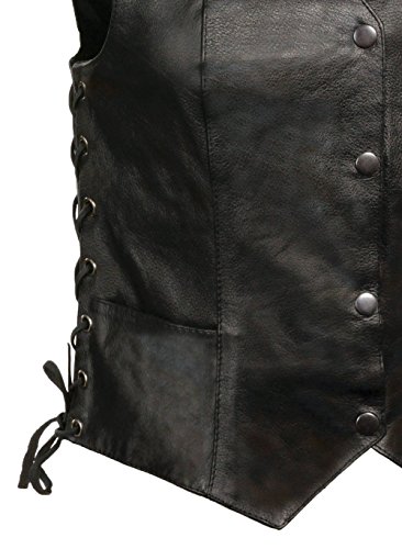 Studio : SHAF Publisher : SHAF Binding : Apparel Product Description Women Premium Cowhide Leather Vest in Black with Side Lacing sizes from XS up to 5X. Features include a Pointed Yoke that could be Western for Rodeo Girls, MC for Biker Gals or Fashion for Fashionistas to wear with long tops. Has 2 Front Pockets and 2 Oversized Gun Pockets. 0