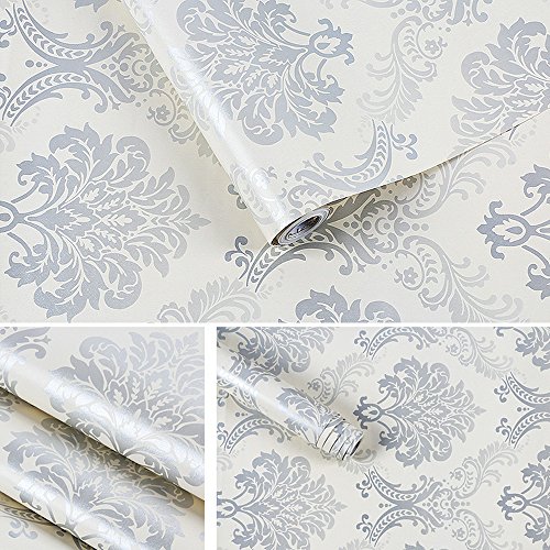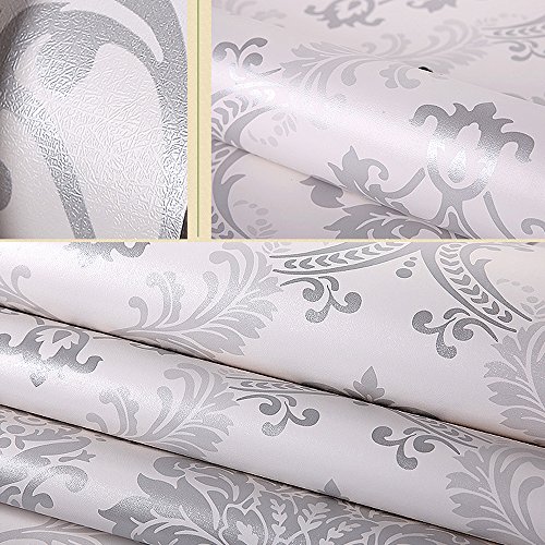 SimpleLife4U Vintage Gray Damask Removable PVC Shelf Drawer Liner Home Decor 17x118 Inch Valentine's Day Gift