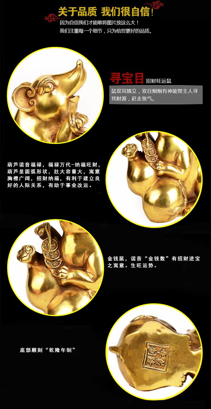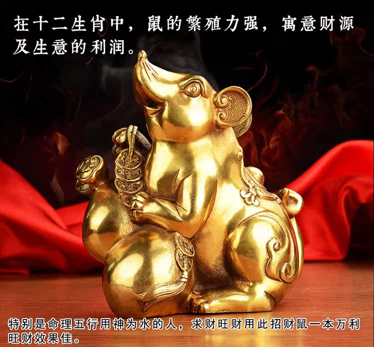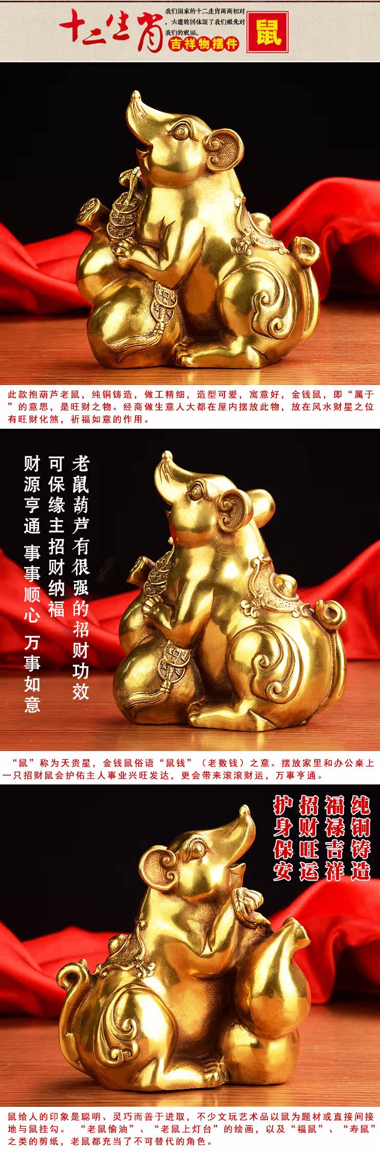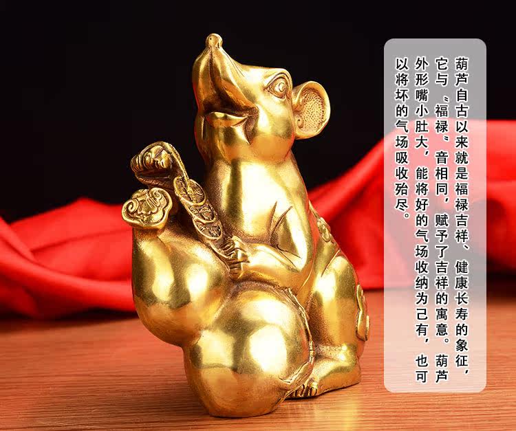 开光纯铜十二生肖鼠招财老鼠摆件铜葫芦鼠摆件老鼠子鼠摆件