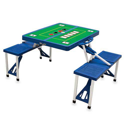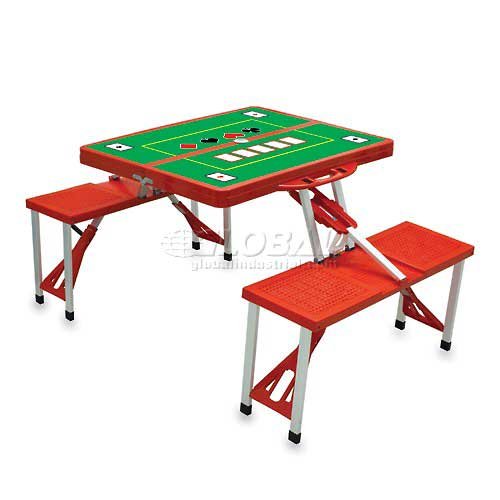 ReleaseDate : 2011-02-03 Studio : Picnic Time Publisher : Picnic Time Binding : Sports Product Description Perfect for camping, the backyard or park, or even the game room, this Picnic Time portable folding table features a compact fold-out table with bench seats for four that you can take anywhere; when not in use, it collapses into an easy-to-transport suitcase-size. This table and chairs unit has a maximum weight capacity of 250 pounds per seat and 20 pounds for the table, and is constructed of ABS plastic, making it is easy to clean, while the frame has an aluminum alloy construction for durability. Look for the Picnic Time multi-striped umbrella (sold separately) that will fit perfectly into the integrated hole in the center. 0