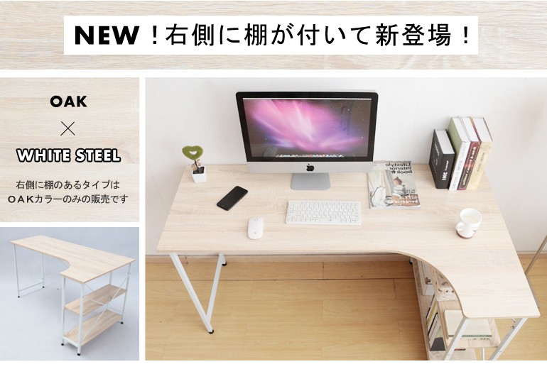| 特長 | ■PCデスク ■L字型ワイドデスク ■低圧メラミン化粧板使用 ■ラック付 ■北欧風 ■X字金具 ■高さ調節アジャスター付き |