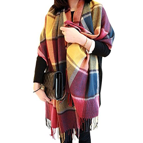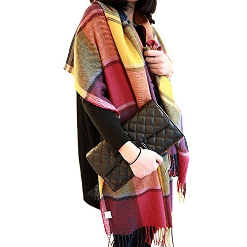Elite99 Plaid Blanket Scarf Women Square Long Scarves Warm Tartan Checked Shawl Winter