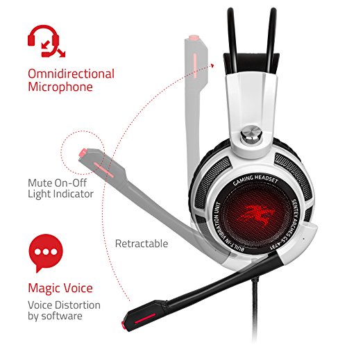 Sentey Arches Gaming Headset Headphones USB 2.0 Connector 7.1 Digital Surround Sound (White) GS-4731 Computer Headset with Microphone - Pc gaming headset - Computer Headset Gaming
