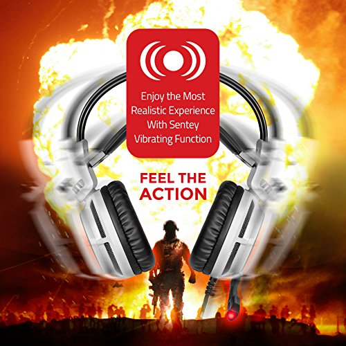 Sentey® Gaming Headset Virtual 7.1 USB DAC Arches with Vibration Intelligent 4D Extreme Bass - Gaming Headphone Headset - Headphones In-line Control - Headsets Lightweight Computer Gaming Headset with Headband Adaptive Comfort - Pc Computer Headset Headphone Gaming USB 2.0 Connector Digital Surround Sound with Braided 2 Meters Cable (White) Gs-4731