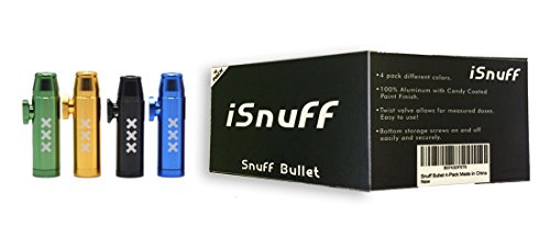 Product Description Perfect snuff bullet/rocket sniffer Comes in 4 colors; Green, Silver, Black and Blue, Pocket Size; 2inch tall x Ø 0.6 inch Designed with high quality materials to keep your goods dry and safe. Try them for yourself and feel!!! 100% Satisfaction Guarantee. 0