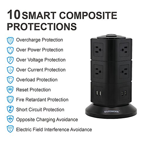- 10 MULTIPLE PROTECTIONS: Overload protector can automatically cut off the power when overloaded and protects your devices immediately. Overheat protection, short circuit protection, makes the socket more safer for use