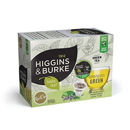 -. Feature : 24-count box of Higgins & Burke Green Tea, single serve capsules / Premium Sencha steamed green tea, enhanced with lemongrass and lemon balm herb / Higgins & Burke Specialty Teas are blended from hand-picked, high-grown tea leaves for premium quality, rich antioxidant content, and bold flavors / RealCup capsules pour perfect flavor straight into your cup Capsules are compatible with Keurig K-Cup Coffee Makers; / Higgins & Burke and RealCup have no affiliation with Keurig Incorporated or K-Cup