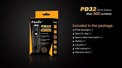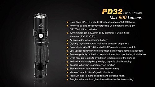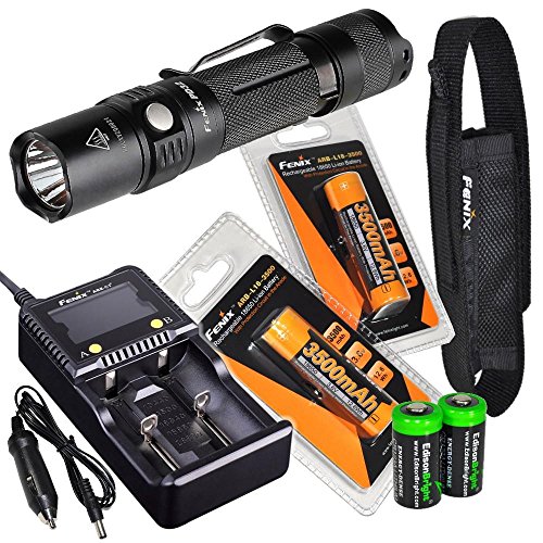 2016 Edition Fenix PD32 900 Lumen CREE LED Tactical Flashlight, Fenix smart battery charger, 2 X Fenix 18650 ARB-L18 3500mAh rechargeable batteries with 2X EdisonBright CR123A Batteries bundle