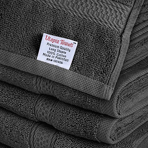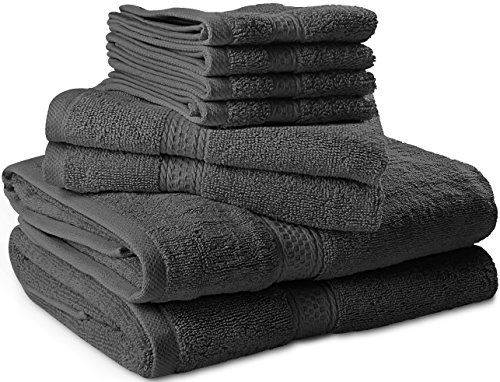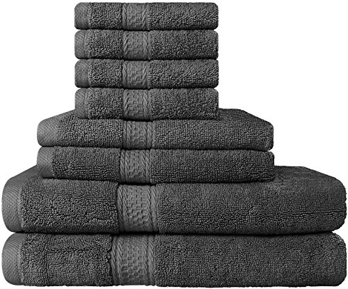 Premium 8 Piece Towel Set (Grey); 2 Bath Towels, 2 Hand Towels and 4 Washcloths - Cotton - Machine Washable, Hotel Quality, Super Soft and Highly Absorbent by Utopia Towels