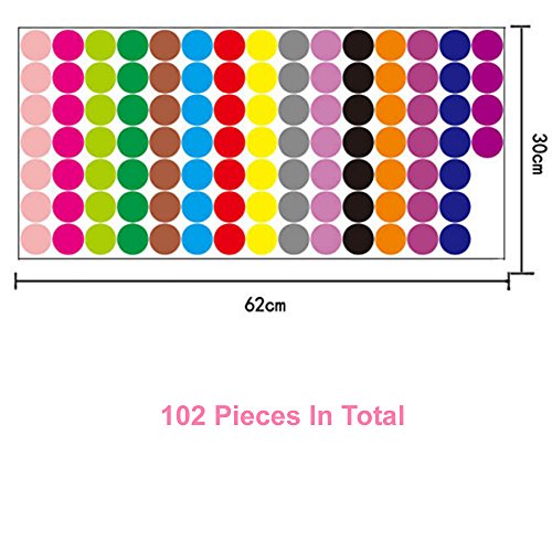 Set of DIY wall decor stickers including 102pcs circle dots in various primary colors