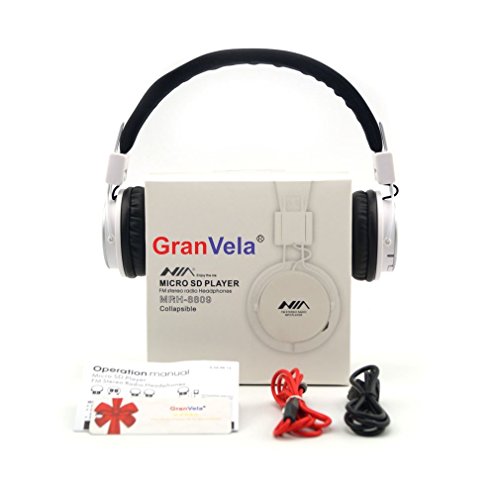 -. Binding : Misc. -. Brand : Granvela -. Color : whites -. Feature : Great Headphones! 18 Hours of Continuous Playback time, with 3 Minutes of fast charging you can listen for up to 1 Hour. / Leatherette Ear-pads: Full tilt ear cups and soft leatherette foam ear pillows ensure comfort. / Founctions 3 In 1 : Micro SD Player/FM Stereo Radio/3.5mm Headphones. Instant Music Sharing With 3.5mm Cables. / Delivers clear sound and Deep bass with EQ Key, You can Choose Different sound mode like (ROCK/ POP/ CLASSIC/ JASS/ BLUE HALL/ BASS/ SOFT/ COUNTRY/OPERA (Short Press EQ Key). / Adjustable in length to accmmodate different sizes. Foldable compact design 90-degree ear cups provide extra flexibility, portability, and durability. -. IsAutographed : 0 -. IsMemorabilia : 0 -. MPN : A809W -. PackageQuantity : 1 -. PartNumber : A809W -. ProductGroup : Sports -. ProductTypeName : SPORTING_GOODS -. Title : Multifunctional Kids Headphones, GranVela A809 Foldable Headset with Built-in FM Radio, Micro SD Card Player and Detachable Cable - White