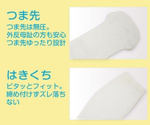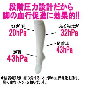 -. Feature : ☆脚の疲れ、むくみが気になる方、静脈瘤が気になる方 / ☆一日中立ち仕事の方、デスクワーク等、同じ姿勢を続けている方 / ☆冷え性の方、妊婦さん / ☆つま先がないから外反母趾の方にもピッタリ / ☆足が重く、だるく感じる方