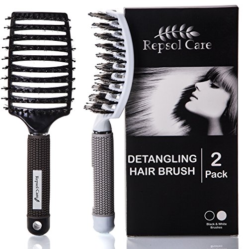 -. Binding : Misc. -. Brand : Repsol Care -. Color : Black and white -. EAN : 0611359501270 -. Feature : BOAR BRISTLE HAIR BRUSH - natural boar bristles promote healthy hair by stimulation of natural oils from the scalp. / DETANGLING HAHIR BRUSH - added nylon bristles help detangle thick hair and massage the scalp. With a mixture of natural boar bristles & nylon pins, this brush is perfect for detangling the hair while spreading oils from the root to the tip of your hair. / VENTED HAIR BRUSH FOR BLOW DRYING - this boar bristle hair brush is vented for faster drying with a blow dryer. / CURVED & OVERSIZED HEAD - this curved hair brush has an extra large head with a curved shape that functions with all hair types by allowing optimum contact points and angles with the scalp while promoting natural hair oil stimulation. / FOR ALL HAIR TYPES - this brush can be used by men & women regardless the hair type. Fine hair can take advantage of the boar bristles stimulating natural hair oils for healthier hair, while thicker hair will enjoy the detangling features of this hair brush. Order now and enjoy our 90 day money back guarantee policy! -. IsAdultProduct : 0 -. Label : Repsol Care -. Manufacturer : Repsol Care -. MPN : 611359501270 -. PackageQuantity : 2 -. PartNumber : 611359501270 -. ProductGroup : Beauty -. ProductTypeName : BEAUTY -. Publisher : Repsol Care -. Studio : Repsol Care -. Title : Boar Bristle Hair Brush - Curved and Vented Detangling Hair Brush for Women Long, Thick, Thin, Curly & Tangled Hair -. UPC : 611359501270