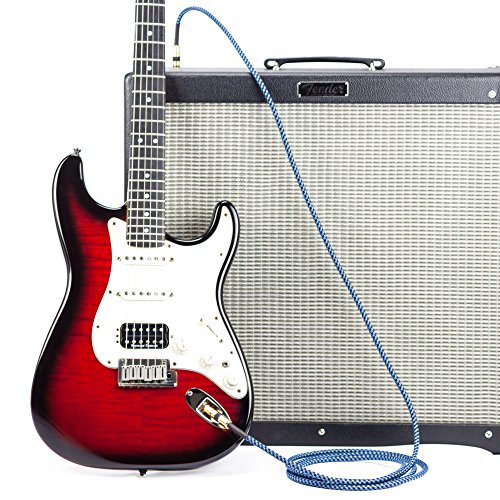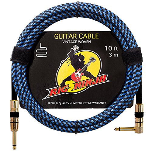 Rig Ninja Guitar Cable - Premium Musical Instruments Cable, Electric Guitar & Bass Guitar Cord - 10ft Recording Studio Quality Guitars & Bass Amp Cord, Heavy Duty Guitar Cords for Guitar Amps - Angle