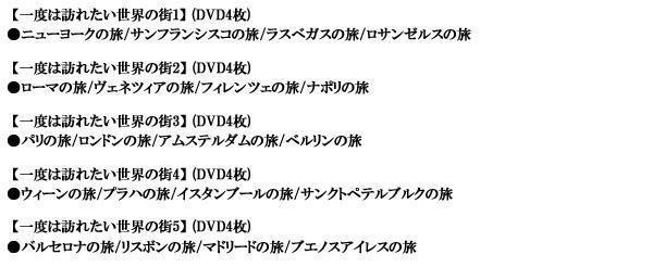 | 高画質ハイビジョンマスターで綴る、大都市から歴史薫る街まで世界の街を巡るDVD紀行。 |