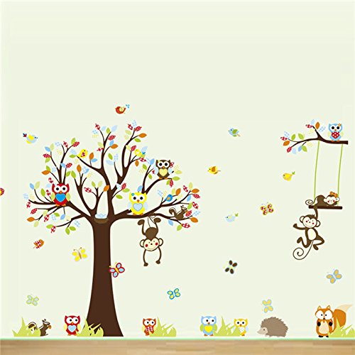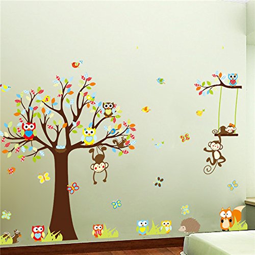 - Title : Zooyoo Animals Tree Money Squirrel Owls Removable Vinyl Mural Art Wall Sticker Decal