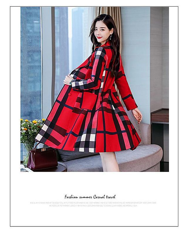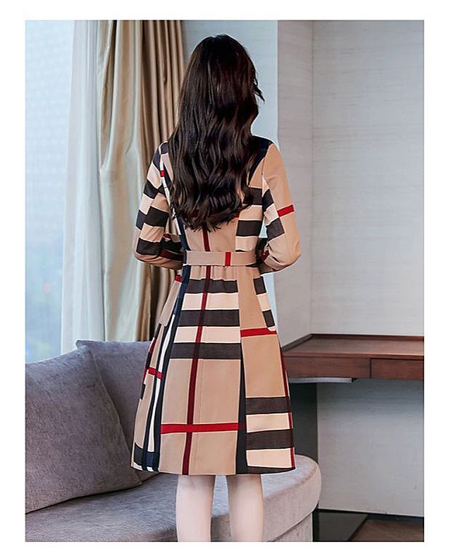 コート全体に大きめのチェック柄が施されたコートです。ウエストから裾にかけて少し広がりがあるためコートを着ていてもスタイルよく見せてくれます。