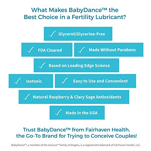 -. Feature : BABY DANCE IS DESIGNED FOR USE BY TRYING TO CONCEIVE (TTC) COUPLES to Supplement Natural Lubricating Fluids and Enhance the Comfort of Intimacy. / WILL NOT INTERFERE WITH CRITICAL SPERM PARAMETERS - Motility, DNA Quality, Penetration into Cervical Mucus, or Ability to Fertilize and Support Embryo Development. / The Only Fertility Lubricant that is CLEARED BY THE FDA, ISOTONIC, AND MADE WITHOUT PARABENS. / WATER-BASED, NON-IRRITATING FORMULA WITH BOTANICAL EXTRACTS to Support Optimal Vaginal Health / UNIQUE MYDOSE APPLICATOR Allows You to Choose the Desired Amount of Product to Moisturize and Supplement Natural Lubrication.