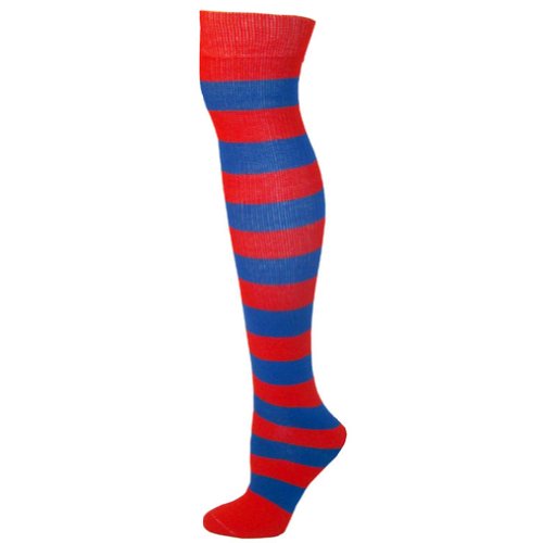 -. Feature : Cushioned foot / Stripes from cuff to toe with cushioned foot / Designed for clowns, but also ideal for sports / Sized to fit most adults (sock size 11-13, shoe size 5 and up). Socks are 27 inches. / Made from 86% acrylic, 8% nylon and 6% elastic